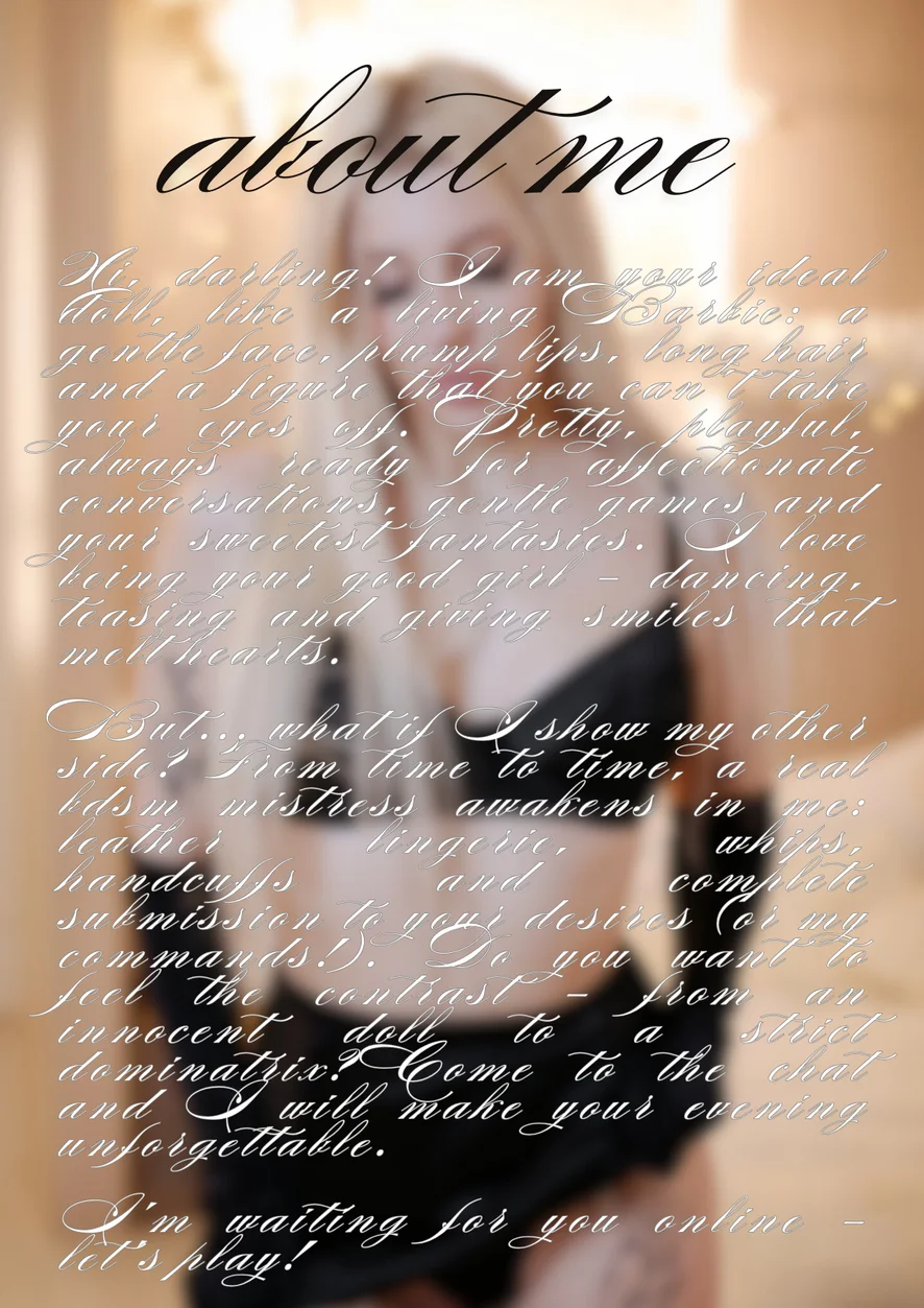 ❤️I love well-mannered men with a good sense of humor (I always say that if you managed to make me laugh, then you have already won 50% from me). I love generosity, dirty mind, interest in me❣️